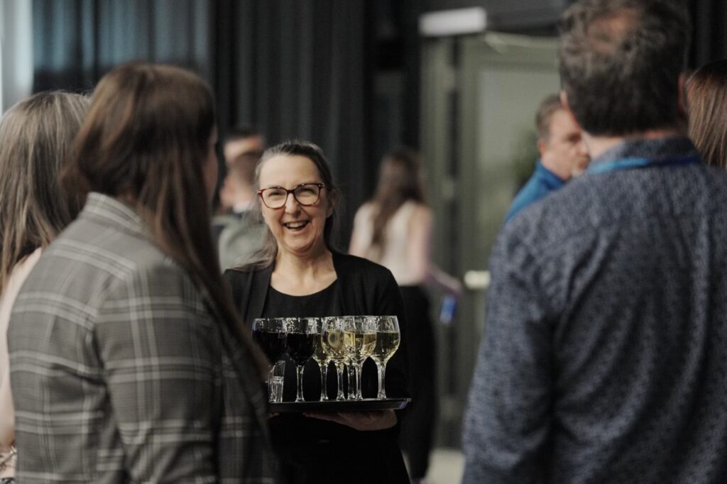 Que serait le Grand Rendez-vous RH manufacturier sans le cocktail de clôture et le tirage des prix de présence? Pour la 10ᵉ édition, le comité organisateur s’est surpassé avec une décoration absolument magnifique aux accents de bleu. Sans oublier l’ambiance lounge, avec boissons, bouchées raffinées et musique discrète en trame de fond.