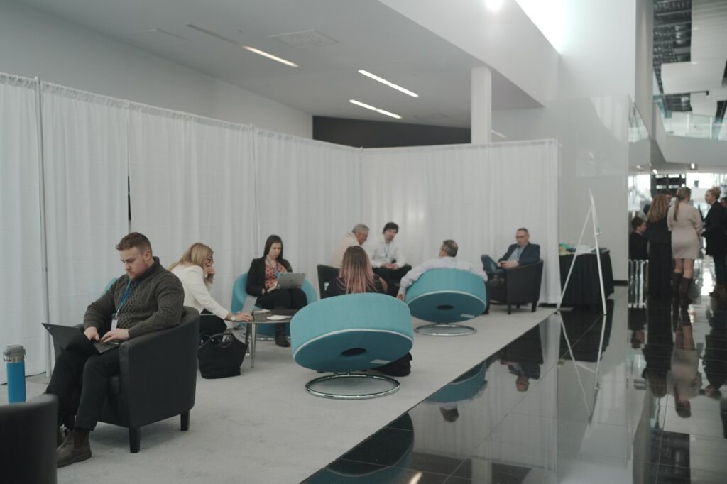 Nouveauté cette année : le podcast La Chaise bleue s’installe dans un espace aménagé à même le hall d’entrée pour enregistrer en direct. Au programme : réflexions, histoires et moments authentiques captés sur le vif auprès des panélistes et des convives. Un beau clin d’œil aux défis, réussites et idées novatrices qui façonnent le monde numérique!